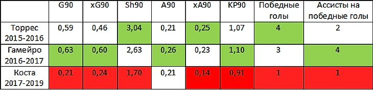 Таким образом, Морату этого сезона мы сравним с Торресом 15/16, Гамейро 16/17 и Костой конца 17/18 и начала 18/19.