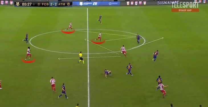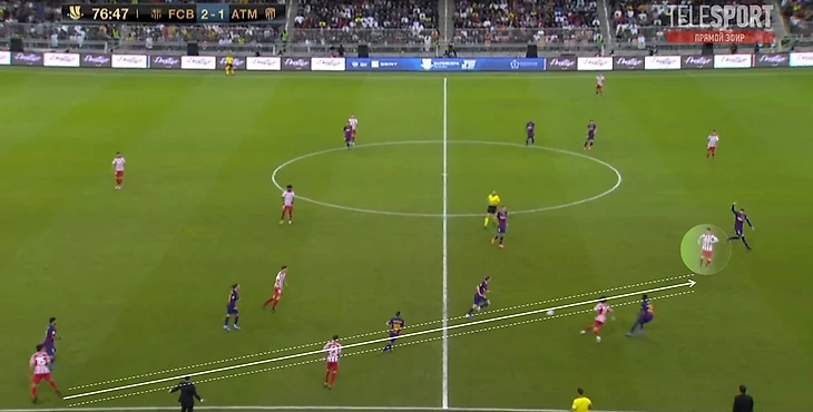 2) соперник владеет мячом, но «Атлетико» часто контратакует, либо присутствуют очевидные отрезки доминирования, например, может помочь высокий прессинг;