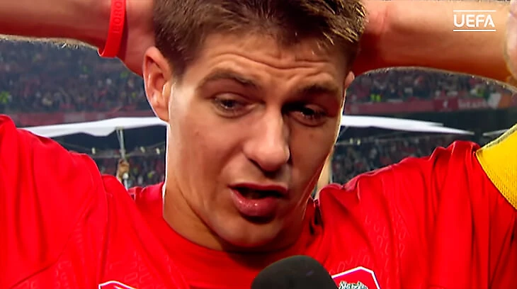 Самым активным участником послематчевых празднований был капитан «Ливерпуля». Стивен Джеррард давал эмоциональное интервью.