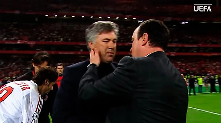 Анчелотти поздравил Бенитеса, а тот похлопал его по щеке.