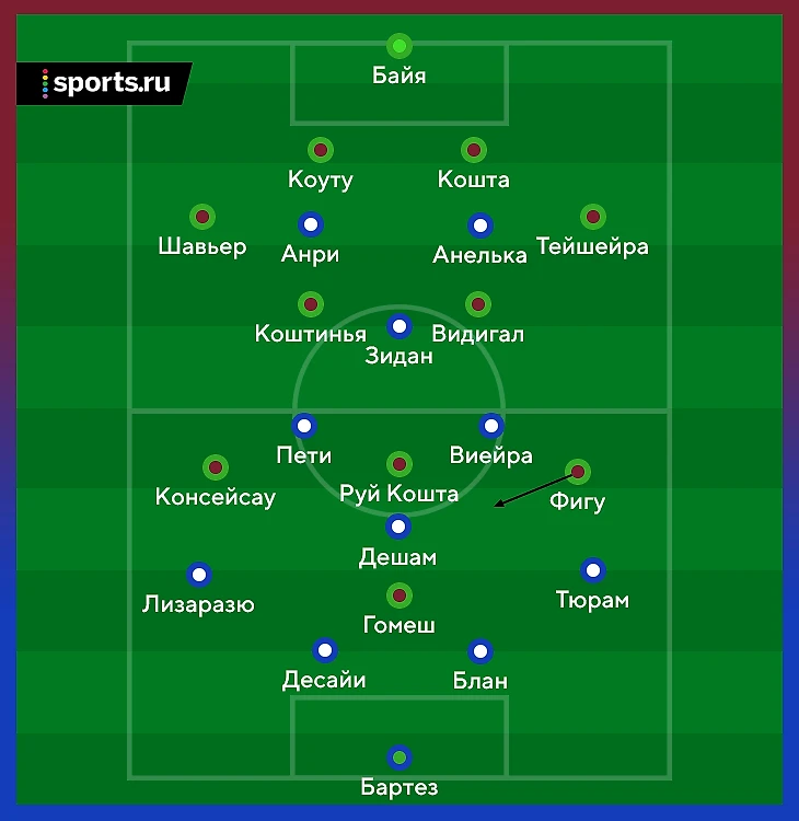Тройку лучших в мире без их имен просто невозможно было вообразить. Об этом Лизаразю тоже упомянул в предматчевом интервью: «Фигу и Зизу – два железных игрока в тройке лучших футболистов мира».