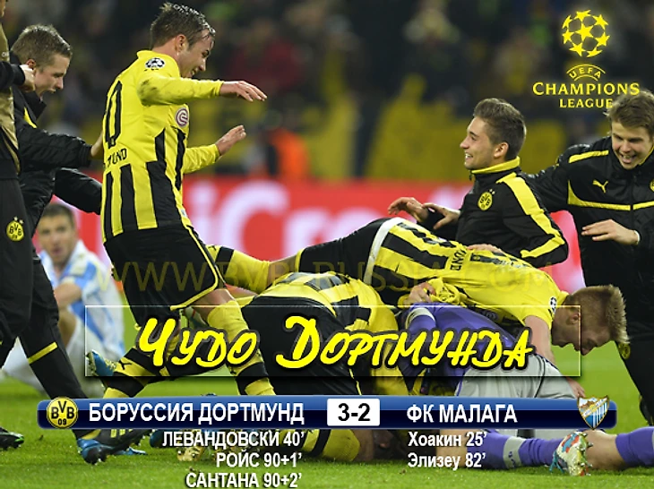 А вот далее было гораздо интереснее. В довольно известном противостоянии с испанской «Малагой» «Боруссия» смогла пройти в полуфинал, забив победный мяч на последних секундах встречи. Как итог, после нулевой ничьи в Малаге, «жёлто-чёрные» добились тяжелейшей победы 3:2 в Дортмунде, проигрывая по ходу матча 1:2.