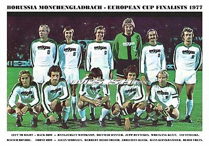 Еврокубковая вершина «Мёнхенгладбахом» была достигнута в 1977 году, когда «жеребята» вышли в финал Кубка европейских чемпионов. Увы, тот розыгрыш не закончился для «Боруссии» трофеем, но всё равно остался в памяти всех болельщиков.