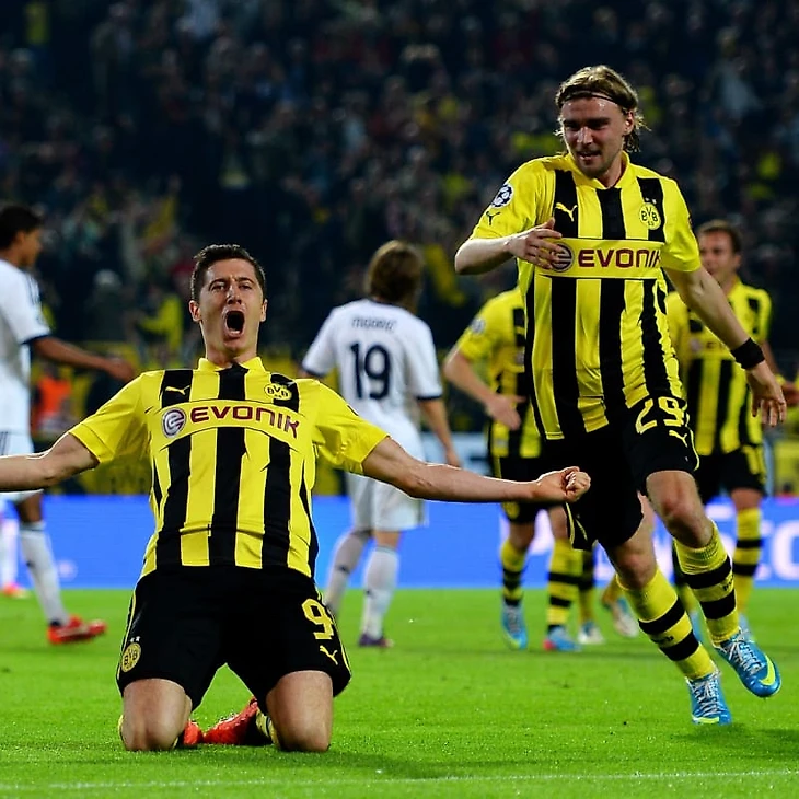 В полуфинале было чуть проще, но не менее событийно. В первом матче, на «Вестфаленштадион», Роберт Левандовски отметился покером в ворота «Реала», а матч закончился со счётом 4:1. В Мадриде же «Реал» был близок к тому, чтобы совершить камбэк, но остановился на отметке в 2 мяча, добыв домашнюю победу 2:0. Таким образом, «Боруссия» вышла в финал с общим счётом 4:3.