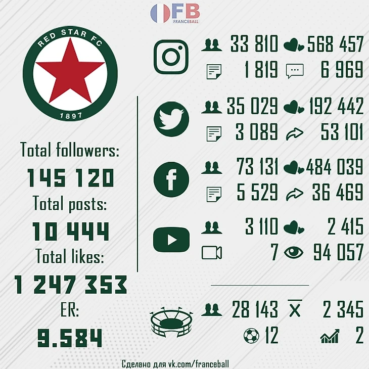 Хотя у «Звезды» не наблюдается такого стремительного роста по количеству. В конце 2018 года было: 68 967 в Facebook, 29 667 в Twitter и 20 603 в Instagram. Качество остаётся на высоте — вовлечённостью пресс-служба может быть в целом довольна. Если бы ещё «Ред Стар» поработал над развитием YouTube-канала, то цены бы не было. Хотя партнёрство с Adidas и матчи против Tango Squad FC имели место быть.