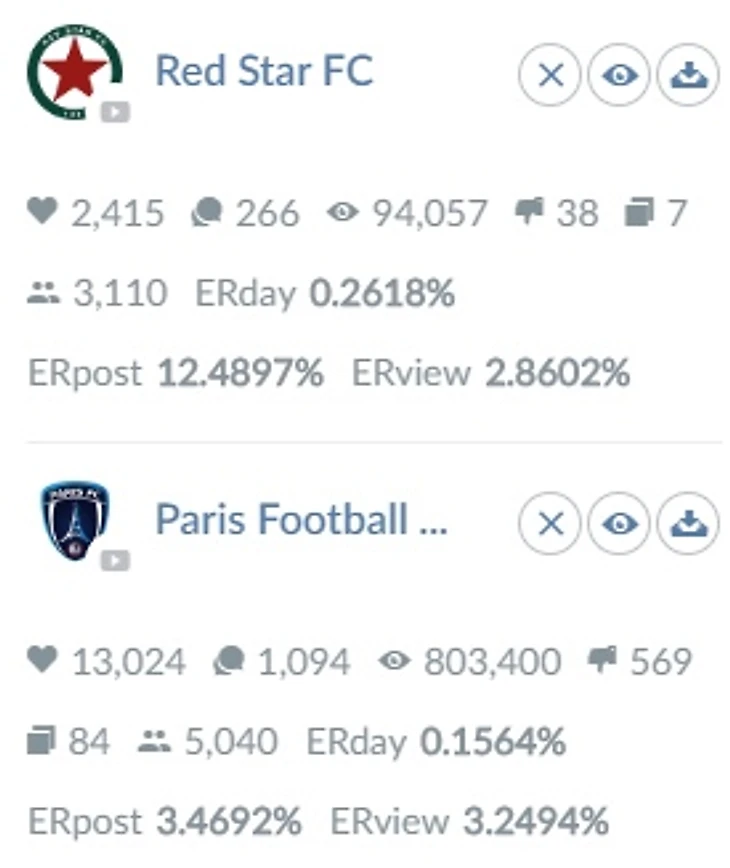 Однако количество пока очень медленно перерастает в качество. Вовлечённость аудитории гораздо ниже, чем у соседа из Сен-Дени, и это при преимуществе в количестве «фолловеров» более чем на 100 тысяч.