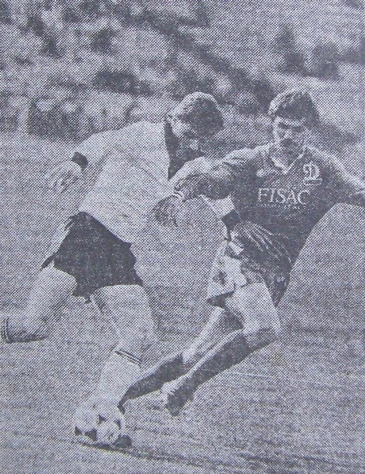 Матч примечателен тем, что в составе донецкого «Шахтера» вышли недавние киевские дембеля. Андрей Канчельскис (21, на втором фото в белой футболке пытается протащить мяч мимо Василия Раца) честно отдал два года для народа в составе команды Лобановского на протяжении 1988-1989 гг., поначалу выходя на замены, но под конец - став игроком основы. Виктор Онопко (20 лет) «отслужил» в динамовском дубле весь прошлый сезон-1989. Обращает на себя внимание появление во втором тайме 18-летнего таланта Сергея Щербакова. Тренер горняков Валерий Яремченко все более стал доверять молодым. Правда, «стариков» в «Шахтере» тоже было предостаточно. Но в конкретном случае этот сплав опыта и молодости дивидендов не принес. Пенальти, уверенно реализованное Олегом Протасовым, и расторопность в штрафной площади Сергея Шматоваленко после подачи углового Геннадием Литовченко загнали «кротов» в глубину нор подвалов турнирной таблицы – 5 очков после 7 матчей и 10 место среди 13 участников. Ниже были только «Металлист» (5), и минчане (пропускали тур) с «Ротором» (по 4).
