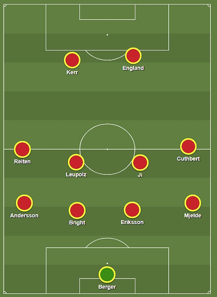Как Мелани впишется в новую команду? Есть несколько вариантов. Для начала взглянем на центральных полузащитников, которые есть в «Челси» сейчас: Софи Ингл, Джи Со-Юн, Дрю Спенс и Марен Мьелде. Лондонцы играют по схеме 4-4-2. Казалось бы, четырёх игроков на две позиции должно быть достаточно. Но не всё так просто. Мьелде в этом сезоне выходит справа в обороне. На старте сезона она заменяла травмированную Ханну Бланделл и отлично проявила себя в непривычной роли. Даже после возвращения Бланделл главный тренер «синих» предпочитает выпускать Мьелде на позицию правого фуллбека. Основными игроками в центре полузащиты являются Ингл и Джи. Спенс – вариант на подмену.