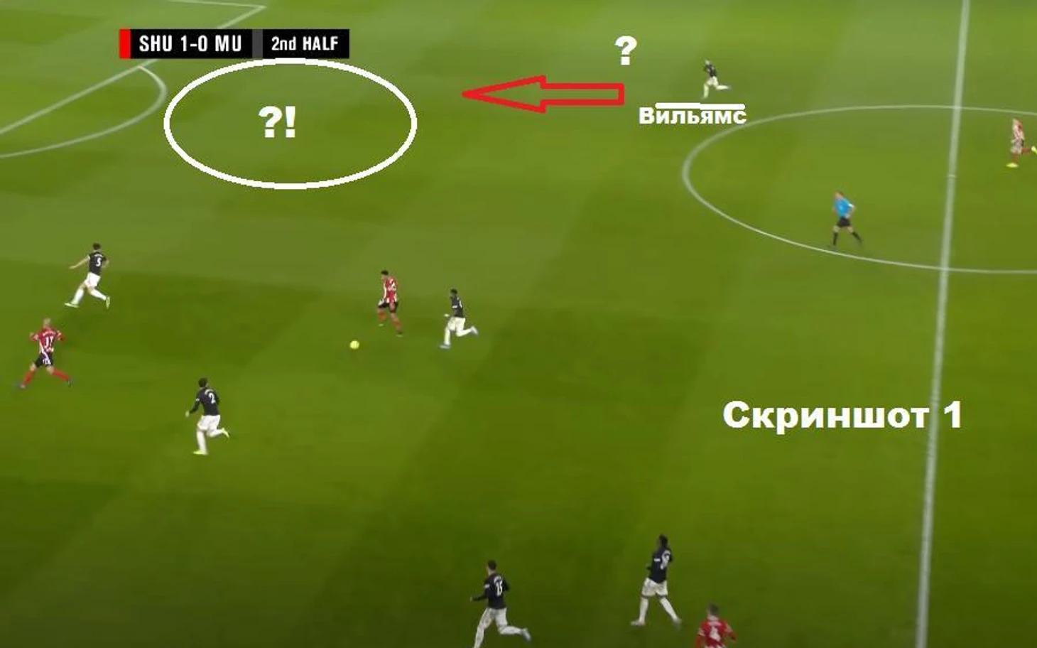 Я вижу здесь аналогию с правым флангом защиты в прошлом сезоне . Когда выходил Далот , неужели он так плохо играл , что надо было покупать Ван Бисаку ? Мне не показалось так ... Но тогда к чему всё это ? К тому что Шоу - английская версия Далота . Он когда выходит на поле , и не проваливается в игре , но и чего то необычного не показывает . Хотя Далот не плохо провёл свой отрезок сезона ( даже сейчас его цифры прошлого сезона в атаке и защите будут лучше , чем у Шоу в этом сезоне ) , его травматичность привела к тому , что МЮ был вынужден покупать себе защитника ( тут ещё учёт затычки Янга , который просто был , был и всё ) . Теперь на правом фланге есть Аарон и Далот . А что на левом фланге ? Вильямс не показывает и ещё долгое время не покажет того , что требуется от фулбека . Он также играет в атаке как и Шоу , а в защите у него проблем ещё больше , его чаще проходят , чем он отбирает мячи , не говоря уже о защитной структуре , когда мяч скажем направом фланге на нашей половине , а Вильямс на другом фланге чего то ожидает , вместо того что бы структурно держать линию защиты ( Скриншот 1 ) . Уже не говоря о том что Брендон правша . Сейчас от фулбека требуется быстрое принятие решений и не стандартные решения . Правше слева это очень не удобно , так как правша будет постоянно стараться переложить мяч под правую ногу , в результате чего момент может исчезнуть , или же его могут попросту накрыть . Игра в одно касание и конечно кроссы . Левша без проблем сможет хорошо навесить или дать длинный пас на бег нападающему , ему для этого даже не нужно много времени под давлением , Вильямс в тоже время уже часто теряет мяч , 17 потерь с плохим контролем , 6 потерь без попыток дриблинга , за 12 игр и 760 минут в целом , это много .