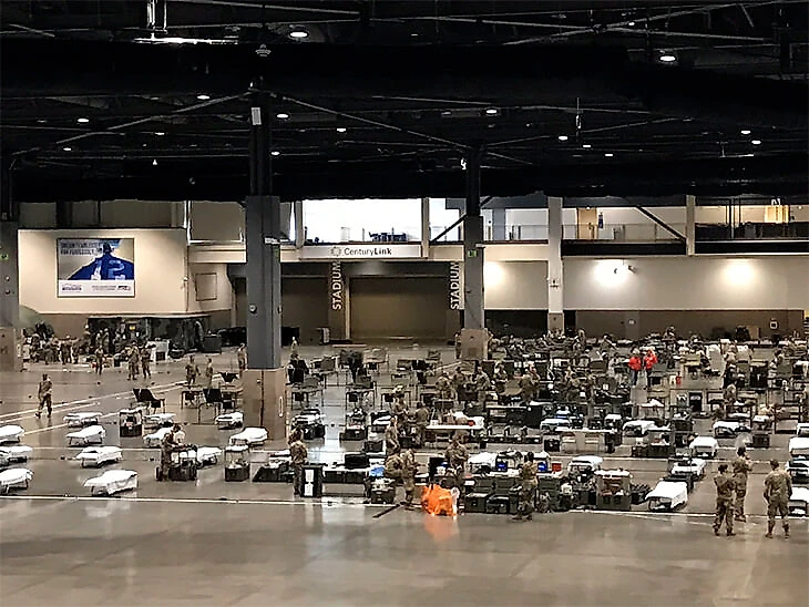 В обычное время здесь играет команда НФЛ «Сиэтл Сихокс», а сейчас на стадионе военные оборудуют больничные места. В США по-прежнему все очень плохо, они занимают первое место по заболевшим в мире – более 600 тысяч подтвержденных диагнозов.