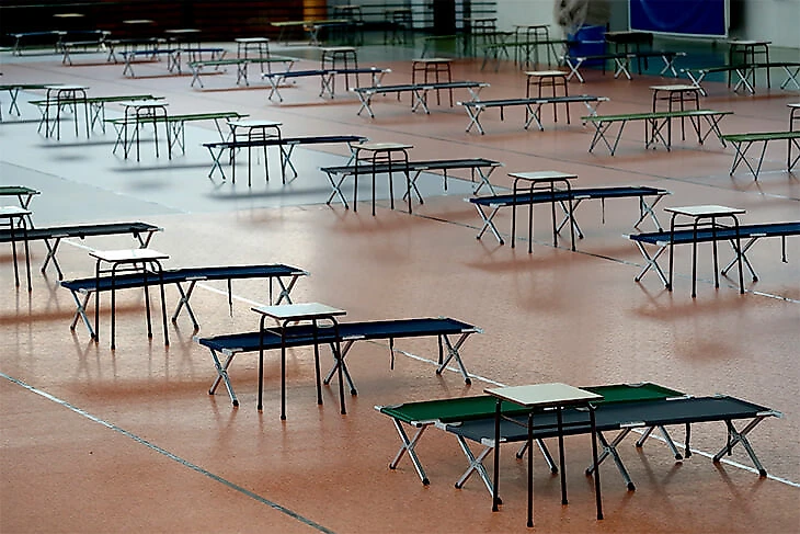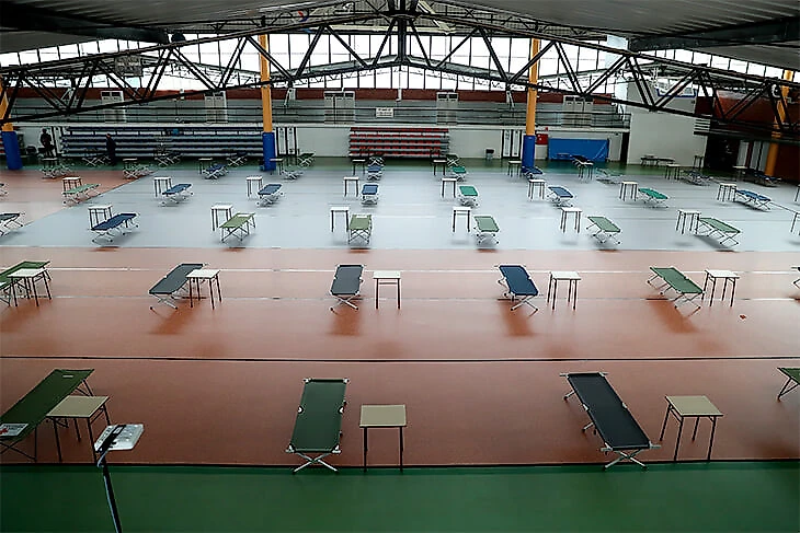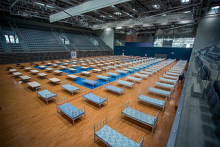 Одно из помещений стадиона Университета Лиссабона уже переоборудовано под очень простые палаты.