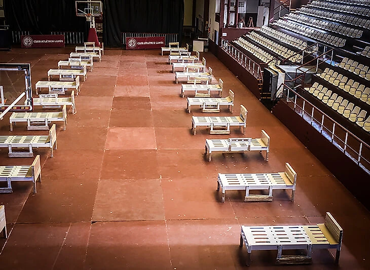 А это баскетбольная арена в аргентинском Ланусе. В стране пока объявлено о 2500 заболевших, это в десять раз меньше, чем в России.