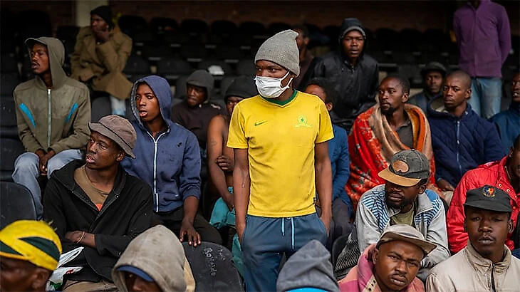 Стадион в южноафриканской Претории используют как КПЗ для бездомны. Этих людей задержала полиция за нарушение 21-дневного режиме изоляции, объявленного в стране.