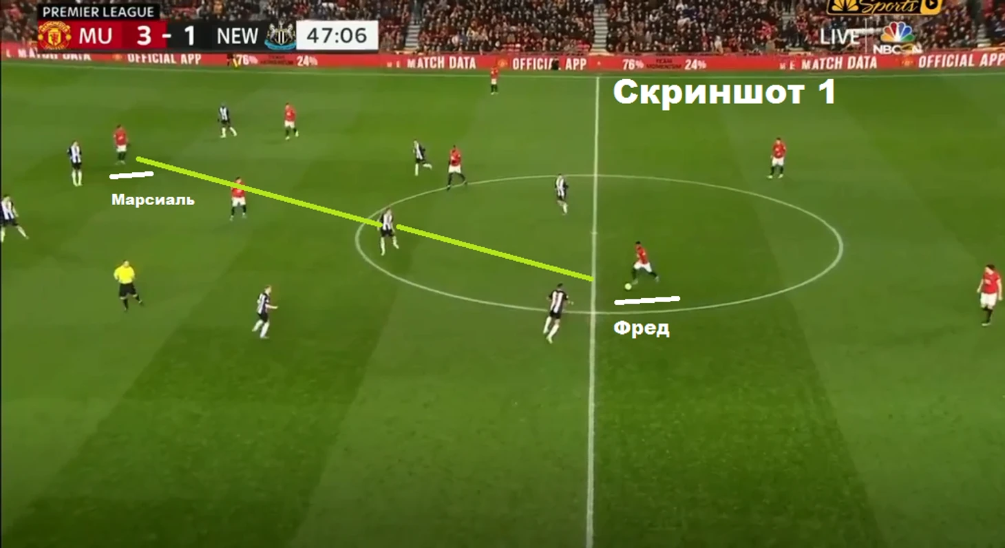 Также приход Бруно Фернандеша повлиял на Фреда с положительной точки зрения . Бразилец стал активнее подключаться вперёд , благодаря передвижениям Бруно , который также может опуститься за мячом , в следствии чего Фред может подниматься чуть выше , в поиске свободных зон . Кстати поиск свободных зон в том числе является сильной стороной Фреда .