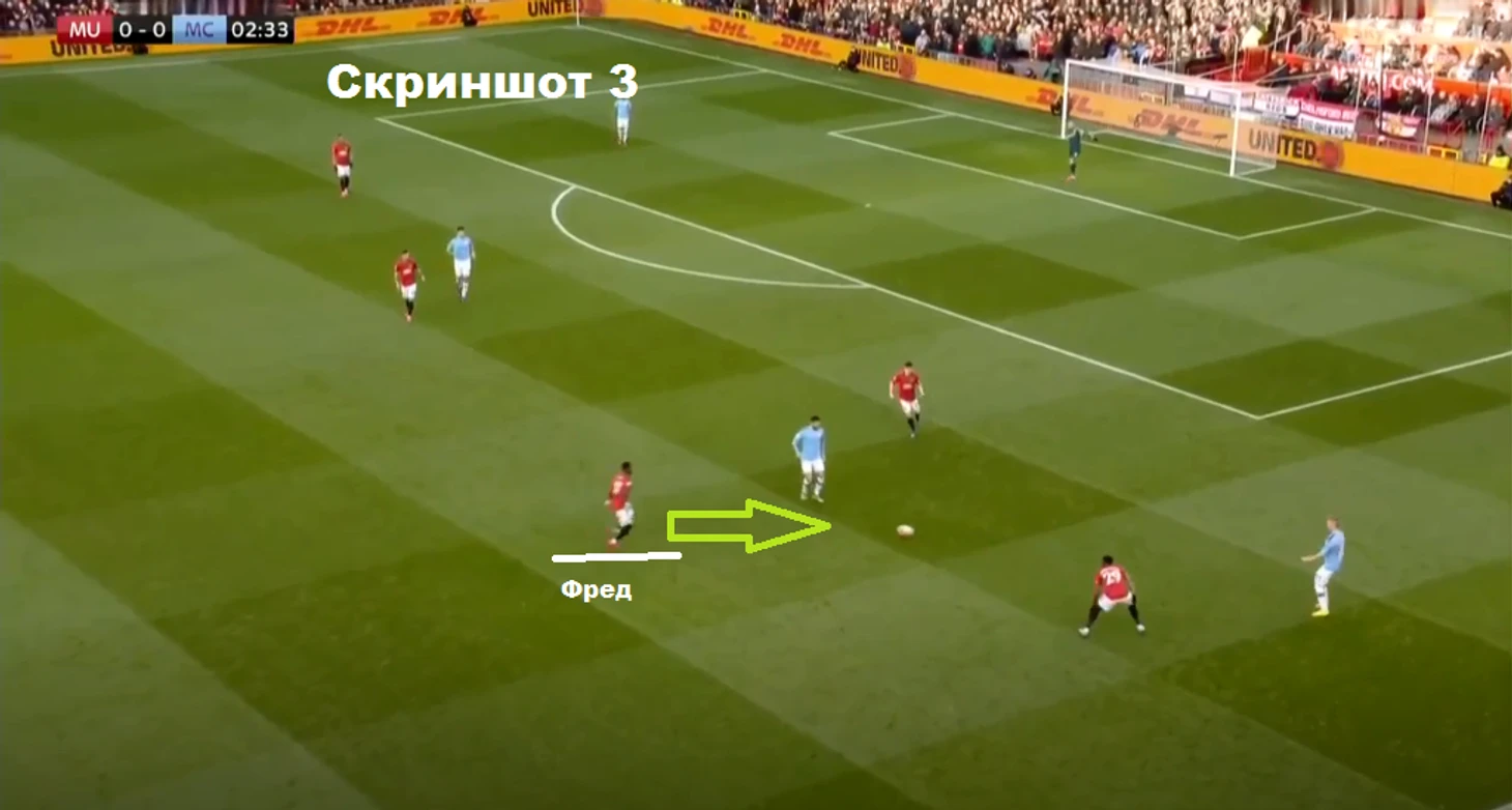 Главная особенность бразильца . Его работоспособность поражает ( ниже будет тепловая карта Фреда ) . Агрессивность Фреда очень помогает МЮ в ситуациях , когда нужно не подпустить соперника к центру поля , и высоко прессинговать аж до вратаря . Родри получает мяч , но видит что Фред уже рядом , и вынужден отдавать назад ( скриншот 3 ) . Однако агрессивный стиль не всегда приводит к положительным результатам .