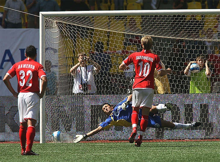 «Дети тут еще ходят какие-то», – говорил мент, обыскивая меня перед входом на трибуну «В» «Лужников». Ту, что за воротами. Честно признаюсь, футбола оттуда я почти не увидел. Например, выстрел Павлюченко в дальние ворота выглядел, будто удар муравья со смотровой площадки Останкинской башни. Во втором тайме даже я позвонил домой, чтобы узнать, кого там выпустил Черчесов. Не потому, что Паршивлюк выходил за основу впервые в жизни, а потому, что услышать даже его имя в гуле было нереально.