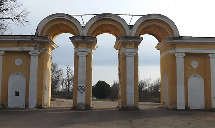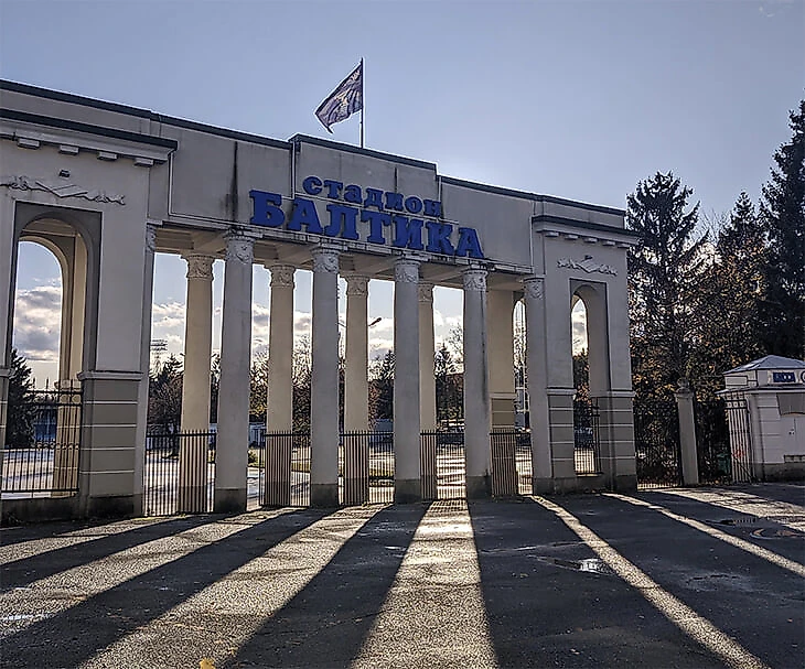 Чтобы попасть на стадион, нужно было пройти мимо мемориала Великой Отечественной войны – обычно я проходил молча, а в первый раз остановился на минутку прочитать имена героев. Дальше помпезный вход в парк (местная Триумфальная арка) и скрытый за деревьями стадион.