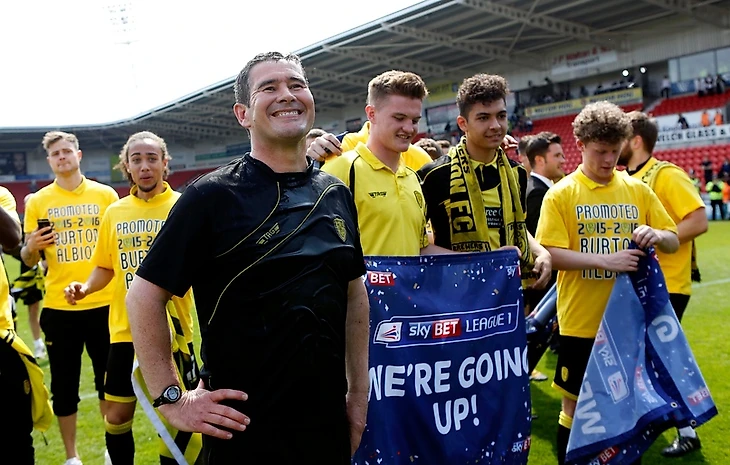 Вскоре менеджерский круг Найджела замкнулся. Через полгода после увольнения Клаф подобрал «Бёртон» из рук Джимми Флойда Хассельбайнка. Под руководством Найджела «пивовары» все-таки доковыляли до автоматического промоушена, хотя и позволяли себе серию из 6 подряд матчей без побед в апреле 2016-го. Ничья с вылетевшим «Донкастером» в последнем туре позволила Бертону совершить мгновенный взлет из Лиги 1 в Чемпионшип.