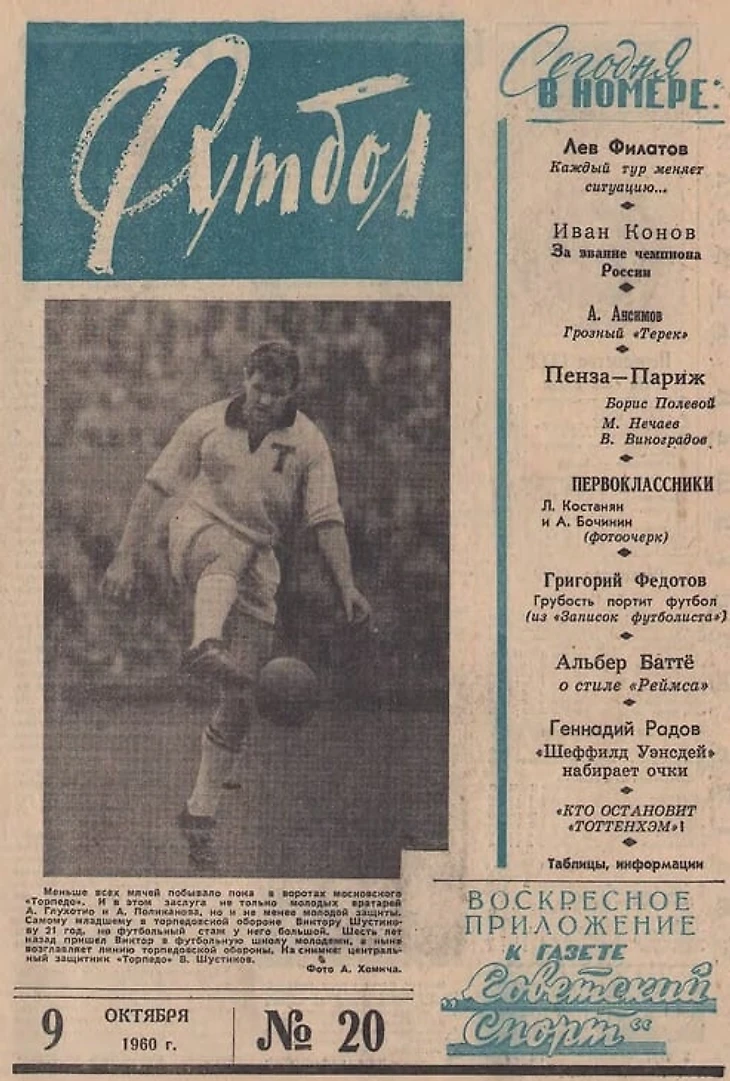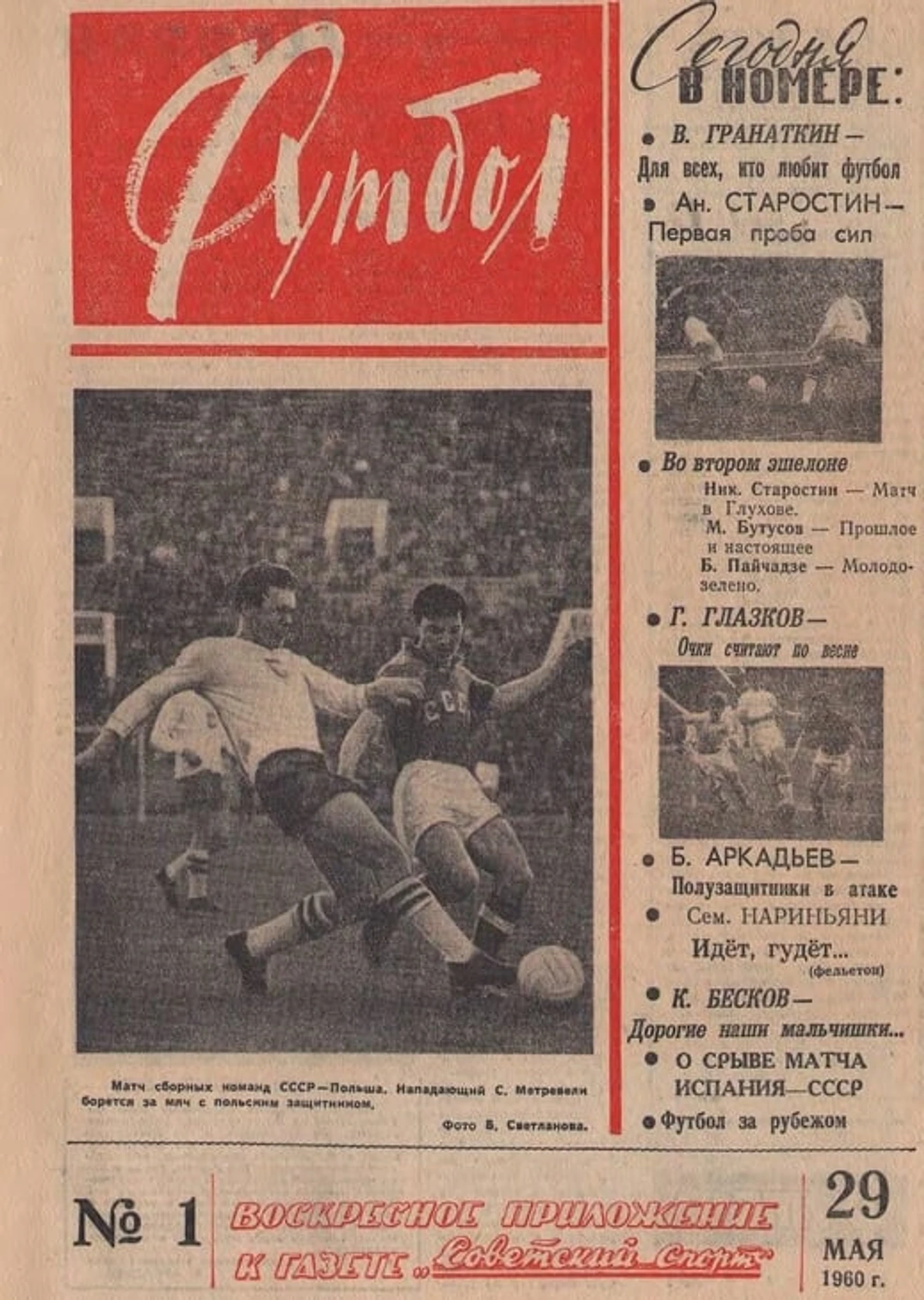 29 мая вышел исторический первый номер журнала. В этот день советские футболисты должны были играть четвертьфинальный матч Кубка Европы против Испании, но правительство Франко не отпустило своих игроков в Москву. Сборная СССР автоматически вышла в полуфинал из-за неявки соперника. А за десять дней до этого команда Гавриила Качалина разгромила Польшу в товарищеском матче – 7:1.