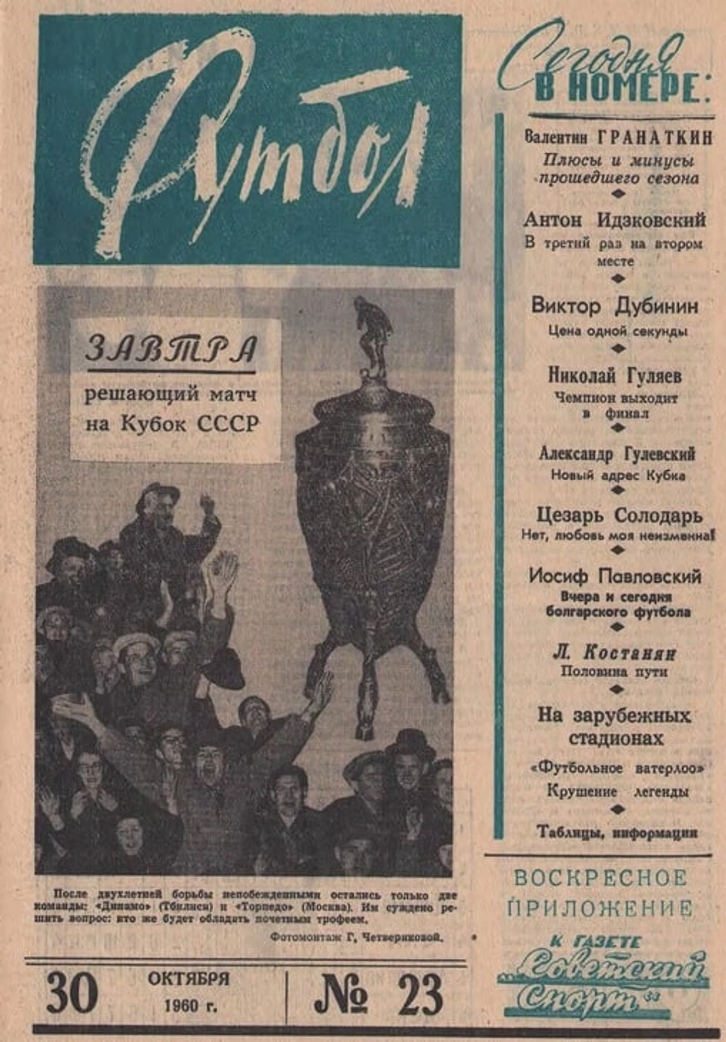 В честь 60-летия еженедельника «Футбол» мы запускаем серию постов на основе обложек культового издания. Это будет дайджест главных событий года: футбольных, чуть реже – хоккейных, а также важных дат из истории СССР.