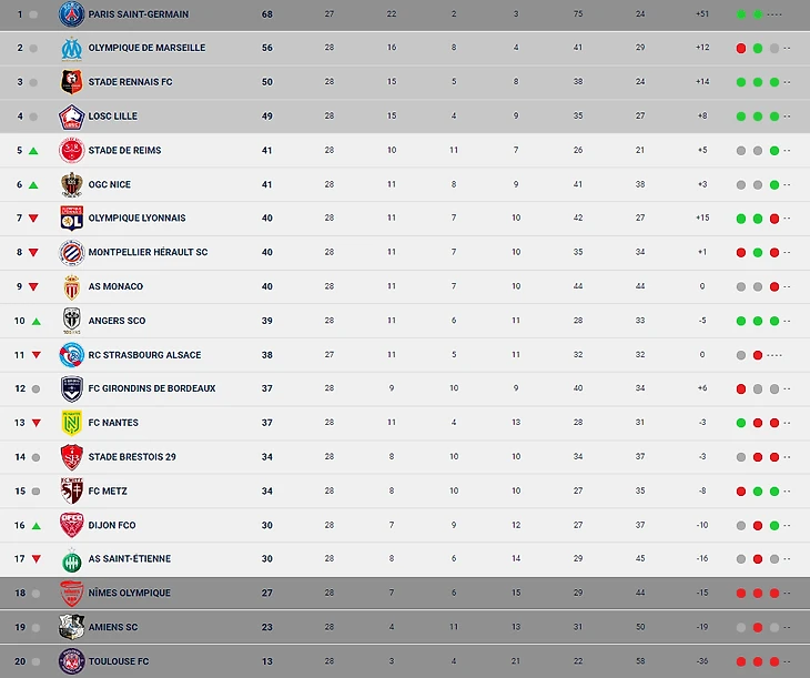 Первый и самый очевидный вариант: черта подводится после 27-го тура. При этом варианте ПСЖ, «Марсель» и «Ренн» – представляли бы Лигу 1 в Лиге чемпионов, «Лилль», «Лион» и «Монпелье» – в Лиге Европы.