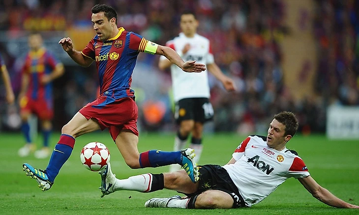 Гиггз, бывалый воин, замечая провал в опорной зоне, рвётся исправлять ситуацию (сквозь Каррика Иньеста сделал передачу на Хави), только вот самому Хави это ни по чём - он как Магнето из "Людей Икс", управляющий металлами, - контролирует валлийца на дистанции, маневрирует в сторону, предвкушая ошибку. Настал момент истины: Педро оттягивается на пару шагов в сторону фланга, а 6-ой номер Барсы сквозь этот маленький коридор (как?!) делает идеальную по силе, точности и направлению передачу. Пересматриваю это вновь и вновь. На сколь гениальное видение и понимание игры может быть у полузащитника? На данный момент это предел возможностей (сравнить с ними могу лишь Пирло). Да, Гиггз, может быть не доиграл. Но не доиграл потому, что Хави одним лишь хладнокровным движением в сторону убедил его в безопасности ситуации, кинув взгляд на противоположный фланг.