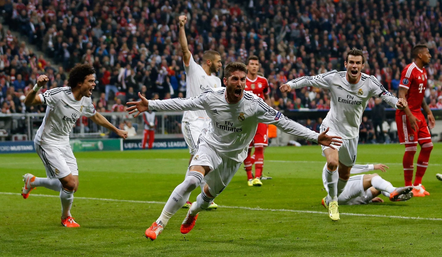 После первого матча в Мадриде, где подопечные Анчелотти обыграли немцев со скромным счетом 1-0, футболисты и руководство Баварии обещали сливочным устроить для них на Альянц Арене "настоящий ад". На деле же получили, пожалуй, лучшее выступление игроков Реала в том сезоне, как минимум: дубль Серхио Рамоса (капитан разогревался и репетировал, как выяснится позже в финале), великолепная контратака мадридцев с завершением Криштиану, а затем и четвертый мяч под занавес встречи со штрафного в исполнении все того же Роналду. Достойный ответ на слова Арьена Роббена и Румменигге, не находите?