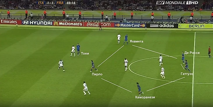 Понятное дело, что эпичный финал карьеры Зидана затмил вообще все, что происходило в этом матче. Но не стоит забывать, что стало залогом победы сборной Италии. В частности, поразительный уровень концентрации в оборонительной фазе — французы во втором тайме перехватили инициативу, но испытывали большие проблемы при взломе защитников (хотя и создавали опасные моменты, просто их могло быть намного больше).