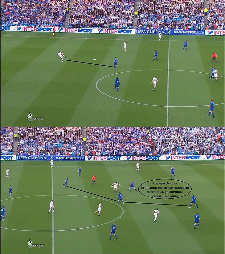 Основная сложность в том, что как в обороне, так и в атаке, «Зенит» имел преимущество в полузащите. Рассмотрим конкретный пример.