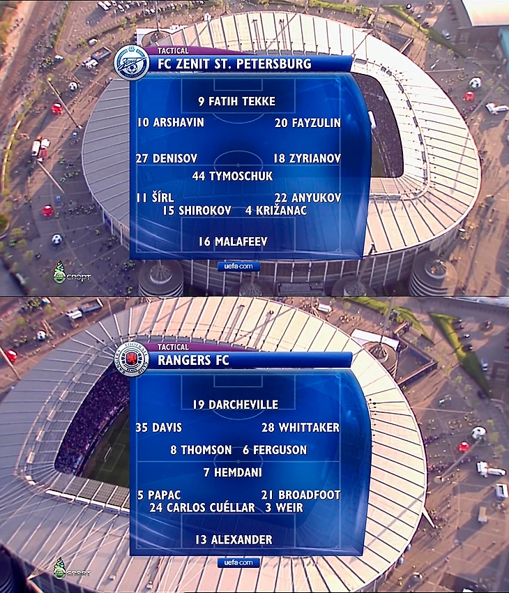 1. К финалу Кубка УЕФА «Зенит» подходил фаворитом. Двумя неделями ранее команда Адвокаата подтвердила свой уровень, разгромно обыграв мюнхенскую «Баварию». Соперники «Зенита» были существенно сильнее оппонентов шотландцев, что добавляло команде веса в глазах экспертов и футбольных болельщиков.