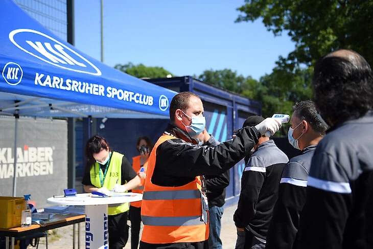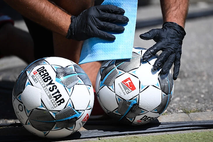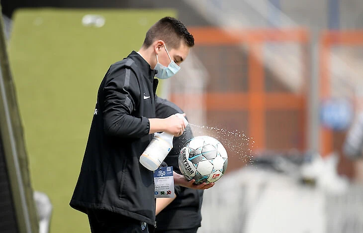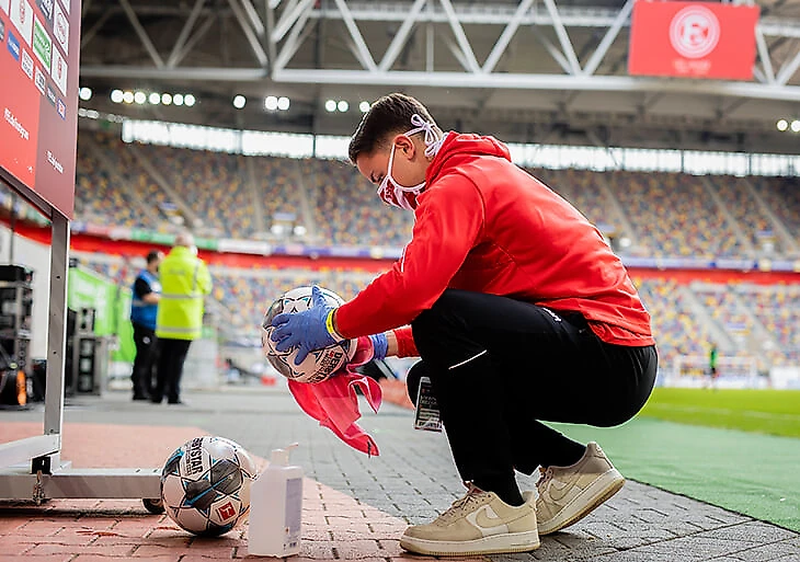 Угловой флажок в маске, дезинфекция мячей и интервью на расстоянии: новая нормальность в Германии