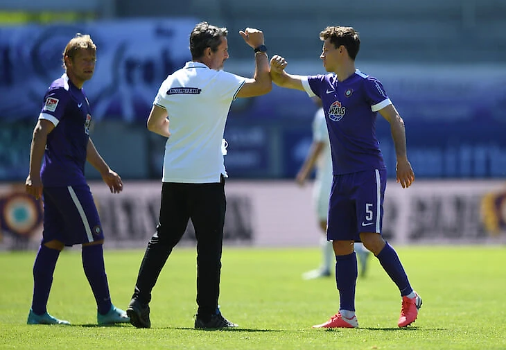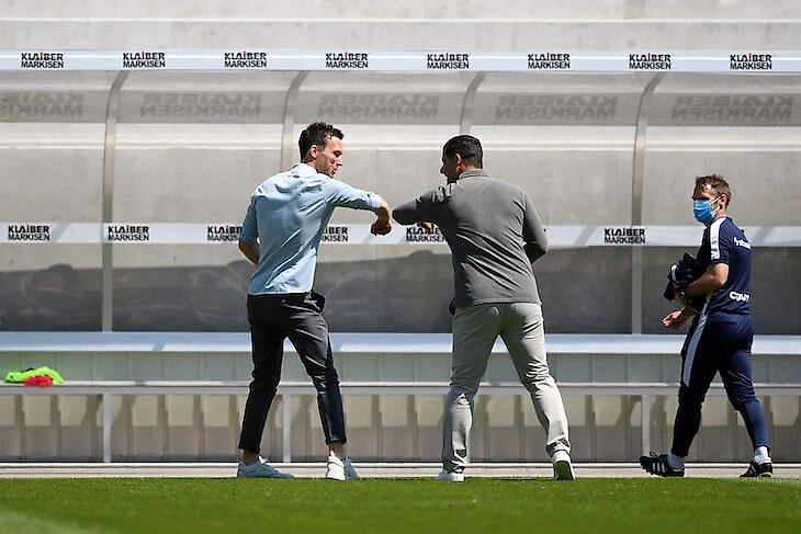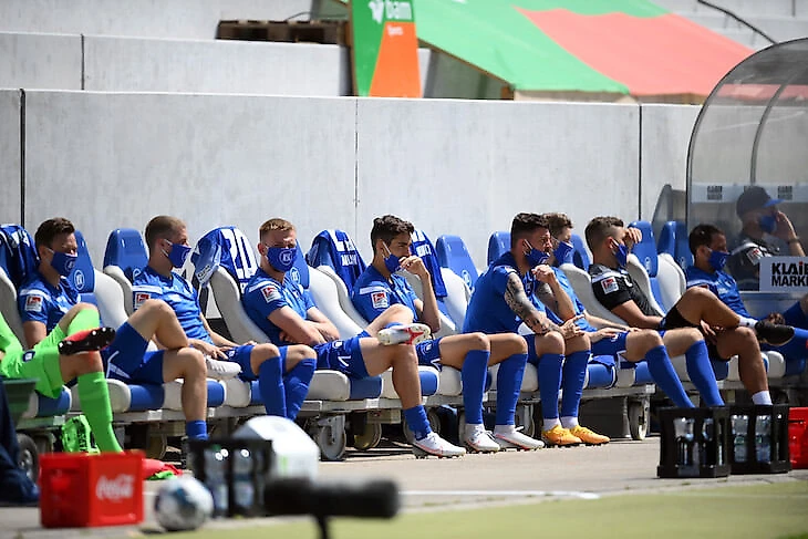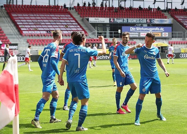 Празднование голов в новой реальности. Матч второй Бундеслиги «Ян» – «Хольштайн».