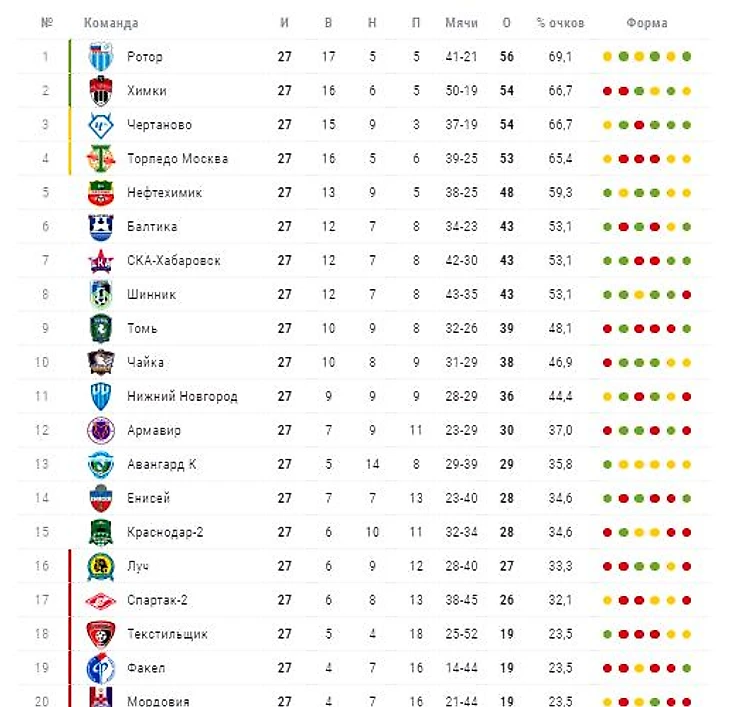 На протяжении месяца развернется нешуточная борьба между «Ахматом», «Крыльями», «Рубином» и «Оренбургом» за сохранение прописки в высшем дивизионе, а вот «Ротор» и «Химки» – уже оформили свое повышение, так как ФНЛ остановлен! Причем ФК «Чертаново» набрал столько же очков, сколько «Химки», но там разница мячей и личные встречи – за команду Юрана.
