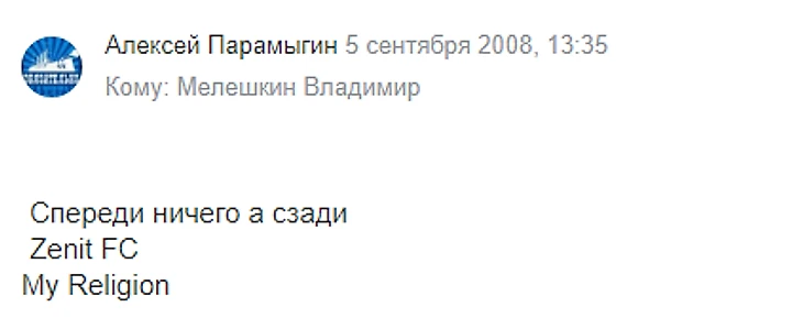 14 мая сего года официальный твиттер ФК «Зенит» разместил ролик, в котором запечатлён гол Игоря Денисова в финале розыгрыша Кубка УЕФА 2008-го года, празднование этого гола и слоган «Zenit Is My Religion»