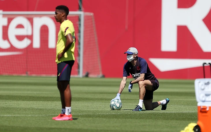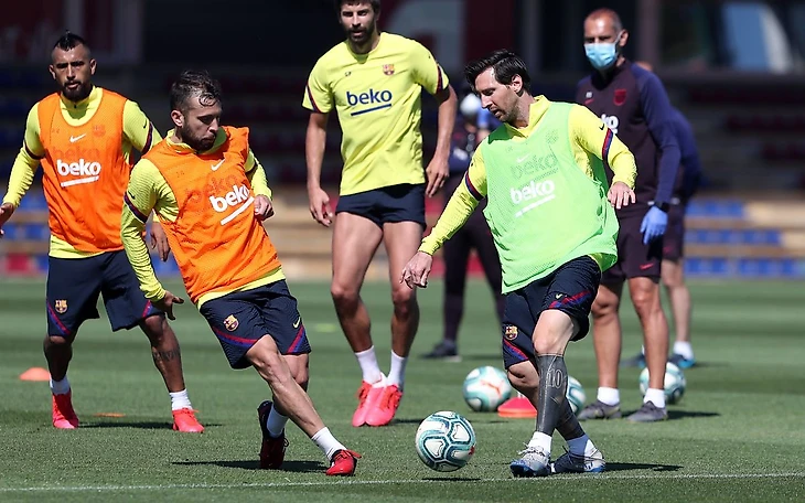 Летающий Месси, замаскированный Сетьен и тер Стеген в медицинских перчатках вместо вратарских: лучшие фото с тренировки «Барсы»