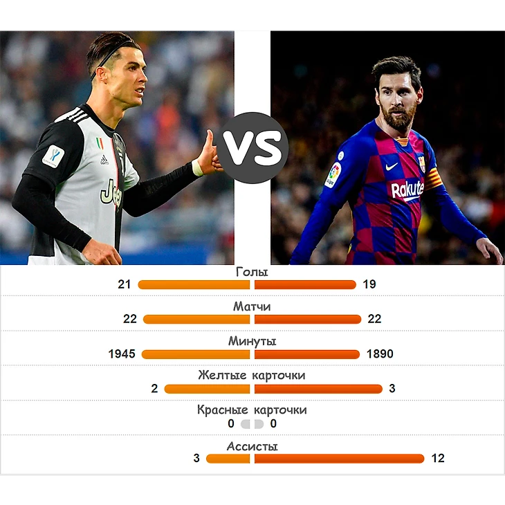 Роналду уже второй сезон играет в «Ювентусе». Португалец продолжил искать новые вызовы вне «Реала» и кажется вместе с его отъездом из Испании, "столетняя война" Криштиану и Лео должна была закончися. Но вряд ли с этим согласятся фанаты этих двух. А вот, что говорит статистика футболистов в национальных чемпионатах: