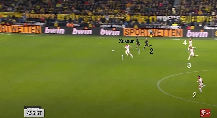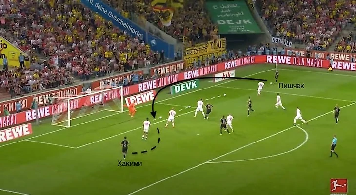 Вертикальные прорывы Хакими за спину защитникам – пушка. За ним невозможно угнаться (самый быстрый игрок в Бундеслиге)