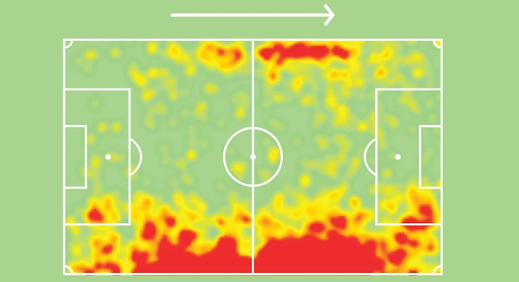 Защитнику «Дортмунда» есть куда стремиться в плане количества отборов и перехватов за матч. Теперь взглянем на то, где происходит основная работа с мячом у это тройки.