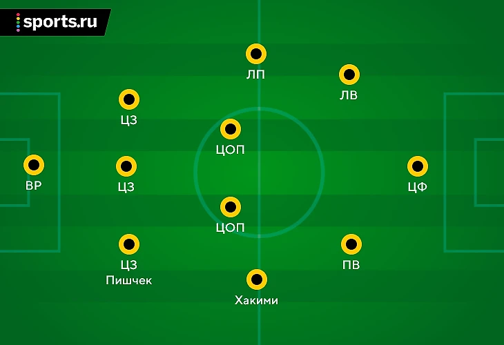 Переход Фавра на схему с тремя защитниками (3-4-3 и 3-4-2-1) в начале декабря прошлого года был обусловлен в том числе желанием тренера больше использовать атакующие навыки марокканца, а правый край обороны оставить Пишчеку, который лучше в защите и может при случае подстраховать задержавшегося впереди Хакими.