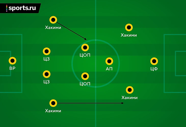 Хакими отлично взаимодействует с партнерами. Они отвлекают защитников, а он находит свободные зоны и отдает голевые