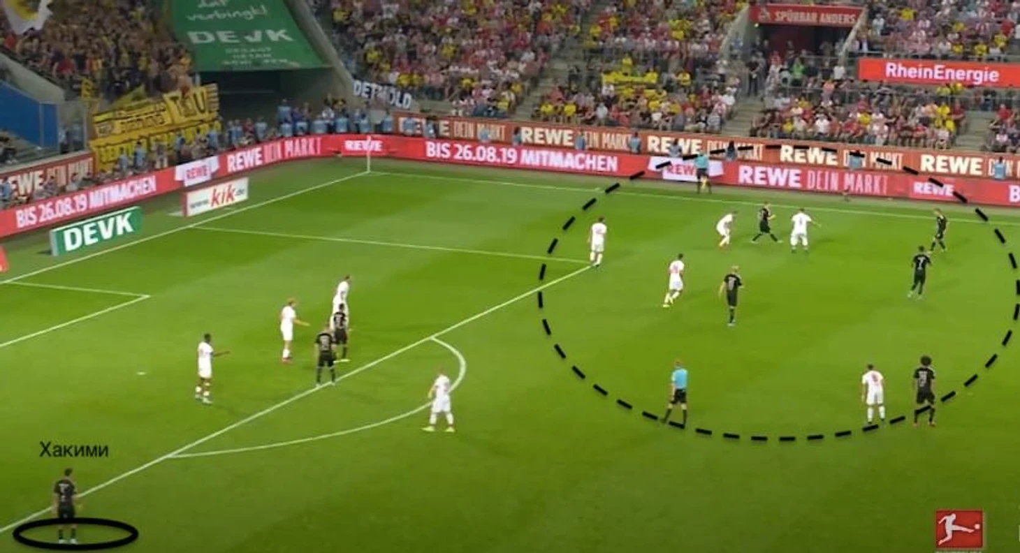 Выездная игра против «Кельна» в сентябре прошлого года. Хакими (здесь он еще играет слева) отдалился от партнеров, которые переместили игру к боковой.