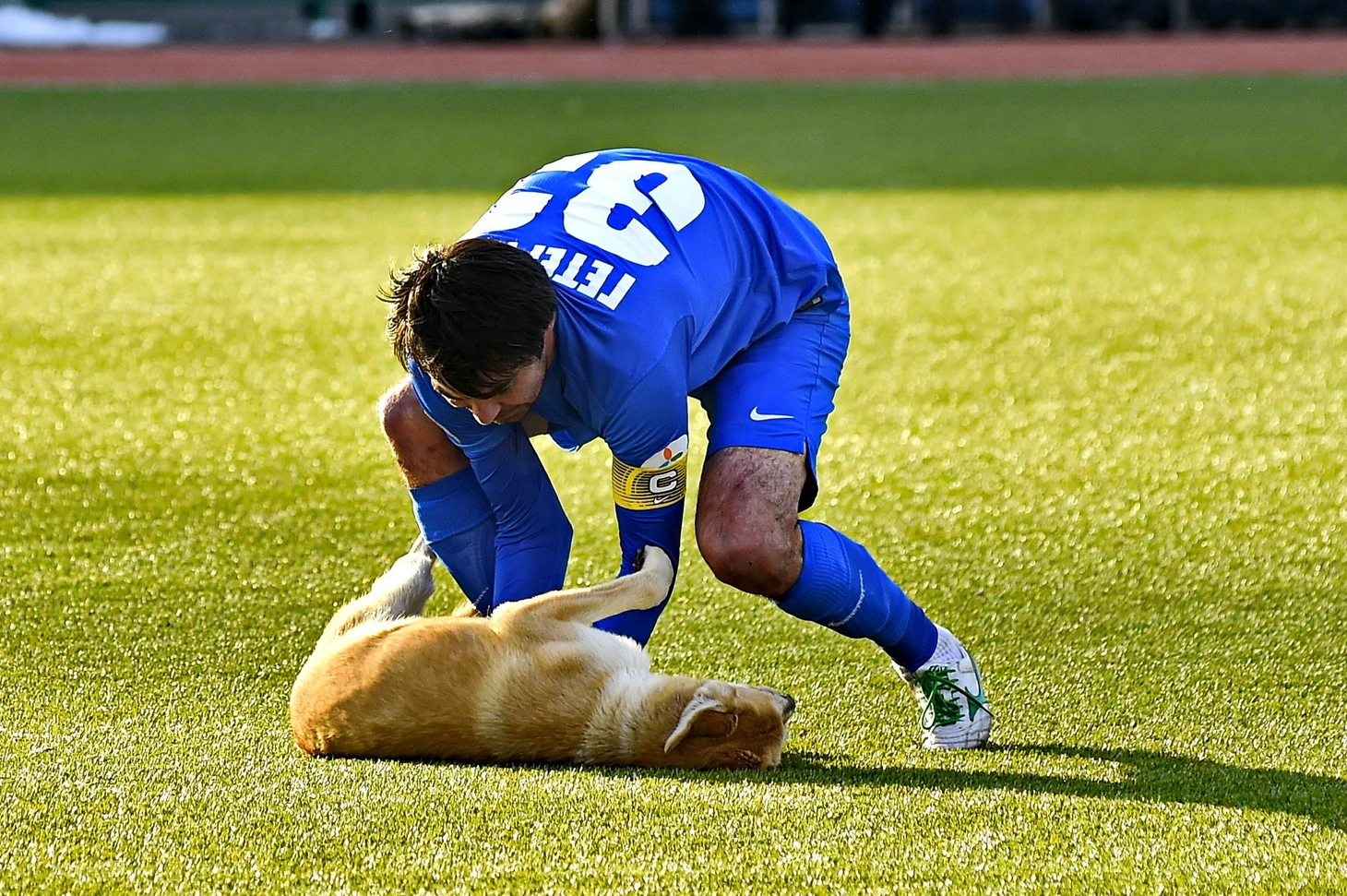 Однажды в чемпионате Казахстана на поле выбежал рыжий пес. Он явно придал болельщикам атмосферы на трибунах, ведь счет до его появления был 0-0. Капитан команды «Иртыш» Казбек Гетериев вначале пытался взять пса на руки, но это оказалось не так уж и просто.
