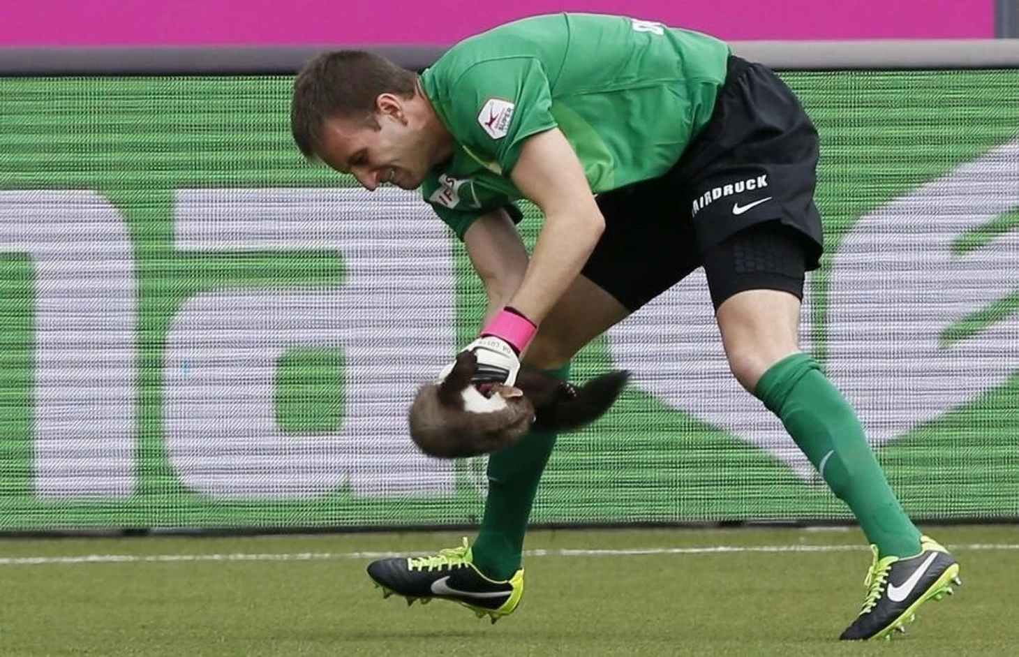 Просматривая футбольный матч, зритель иногда кроме игроков, судей и болельщиков видит птиц, залетающих на стадион. Чаще всего это бывают голуби, иногда воробьи или вороны. Но иногда на газоне появляются не только пернатые, но и куда в больших размерах братья наши меньшие. Давайте вспомним несколько забавных случаев.