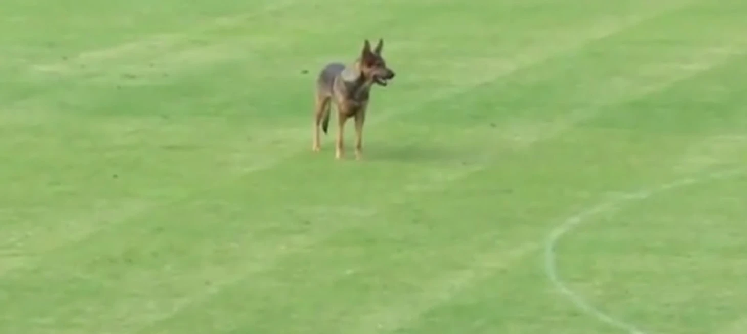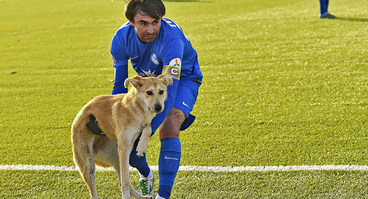 Футболист продемонстрировал неплохую стартовую скорость, убегая от пса. К счастью, четвероногий не был агрессивен и вскоре покинул поле.