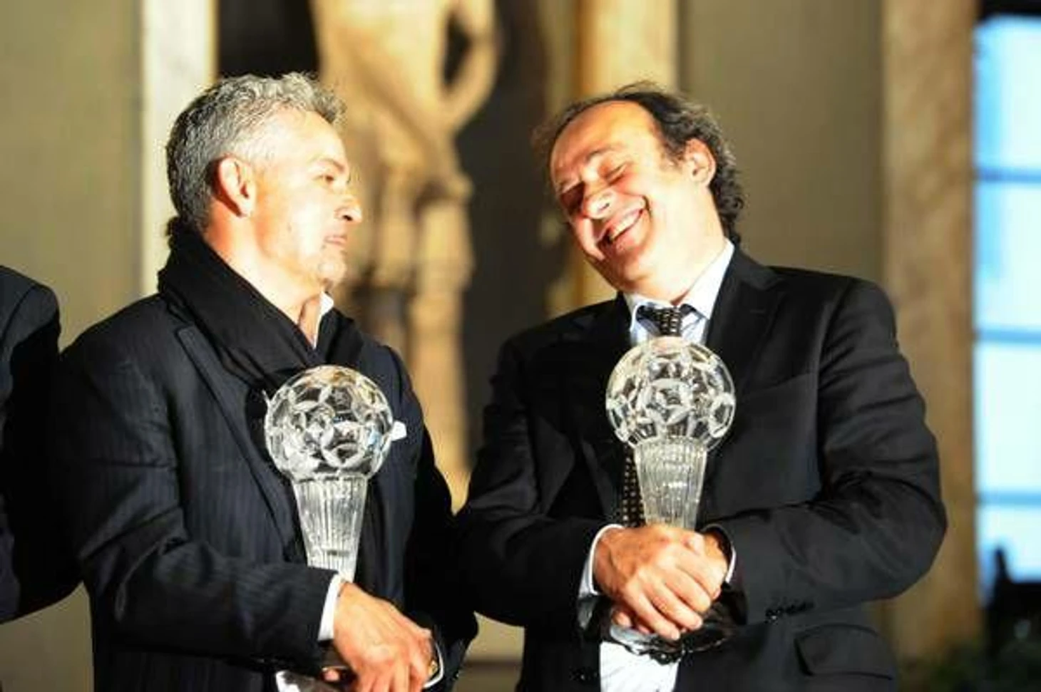 На сцене выстроились шесть фигур, позирующие перед объективами фотокамер. По лысым головам без труда можно узнать Адриано Галлиани, Пьерлуиджи Коллину и Арриго Сакки. На другом конце стоит бывший президент УЕФА Мишель Платини. Все четверо улыбаются, а Коллина и Галлиани перешептываются и смеются, но наш взгляд направлен на оставшихся двух людей, зажатых между Коллиной и Платини – это Марчелло Липпи и Роберто Баджо. Эта пара просто смотрит вперед и неловко улыбается, даже не бросая друг на друга беглого взгляда. Им двоим точно не до смеха.