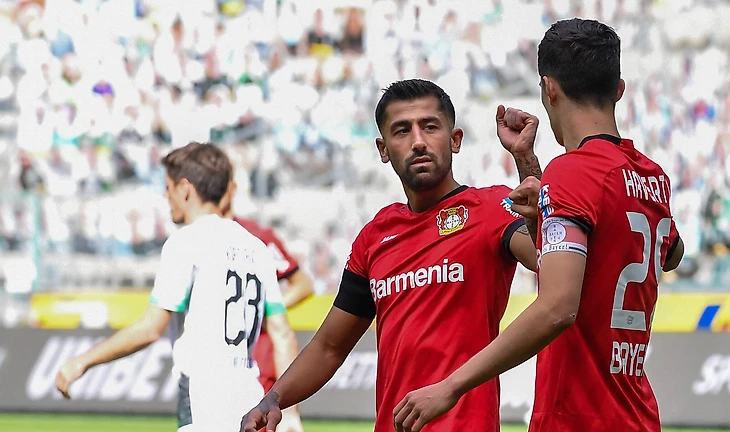 Но вы же пришли сюда посмотреть на эпичные промахи. За них в игре «Байера» и «Гладбаха» отвечал Керем Демирбай. В конце первого тайма Хавертц пробил в перекладину, мяч отскочил к Демирбаю на линию вратарской. Вратаря в воротах уже не было, но Керем промедлил и пробил в ногу защитнику Нико Эльведи.