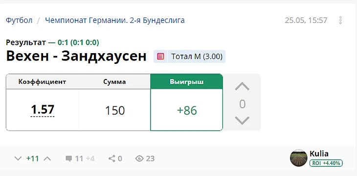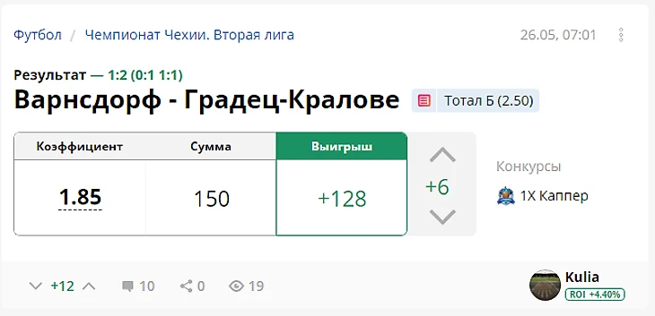 Прогнозы от каперов с РОИ от +10%. День 2
