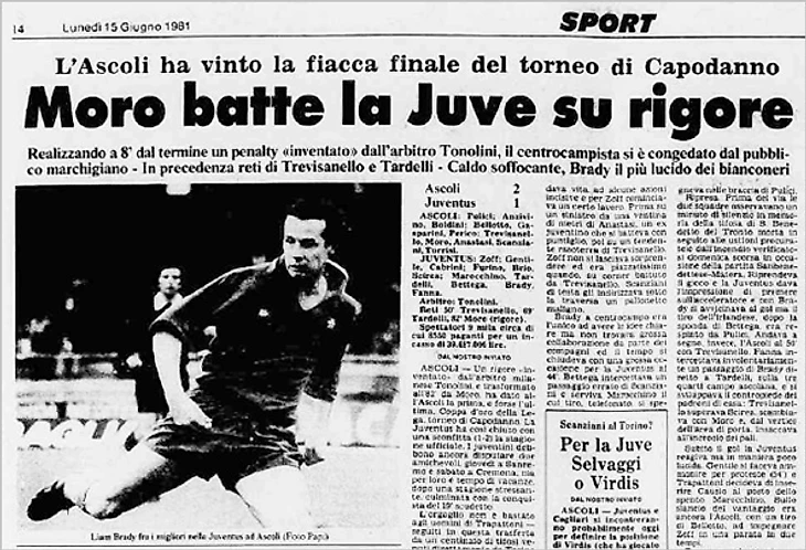 Однажды клубы серии А решили провести автономный турнир и назвали его «Новогодним». «Асколи» выиграл главный приз, победив в финале, естественно «Ювентус». Команду нашу тренировал Траппатони , от которого мы не скроемся даже в гнезде кукушки. Это к слову.