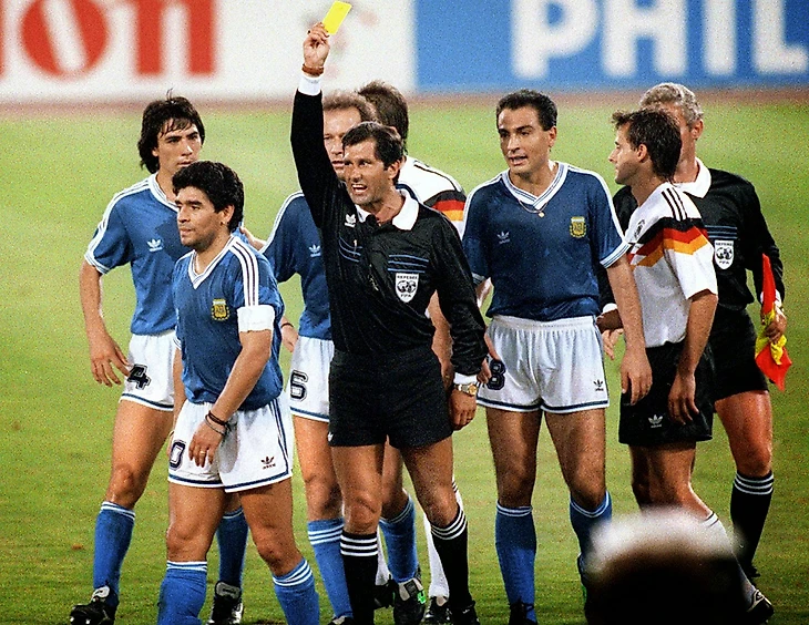Кстати, Марадона был не в форме, звезды не приехали, но слабая Аргентина, хромая, конфликтная внутри и с одним нормальным форвардом, вышла в финал.В матче, где по ее воротам били 16 раз, проиграла благодаря очень сомнительному пенальти. Насколько сомнительному? Любой VAR отменил бы, поверьте уж.
