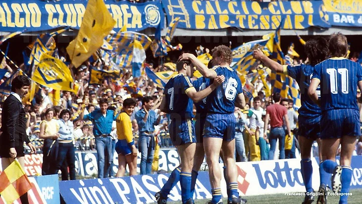 «Эллас Верона» праздновал свой красочный успех в 1985 году. Команда преобразилась вдруг в течение лета, пригласила великолепного Пребена Элькьяера-Ларсена ( очень похожего на Риву) и удивительно выносливого Ханси Бригеля. "Верона" сразу сталаа чемпионом, опередив «Торино» на 4 очка. А ведь «Торино» выиграло оба личные противостояния по 2-1. Платини в том сезоне стал бомбардиром, «Лацио» опять упал в серию В, а величайший из величайших Диего Марадона дебютировал за «Наполи», забив 14 мячей.